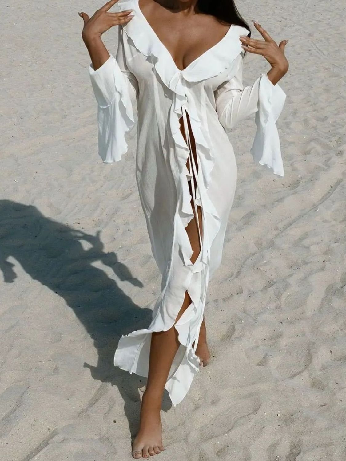 Chic Avenue Ruffled Long Sleeve Cover-Up Dress